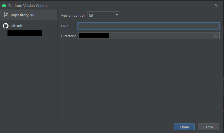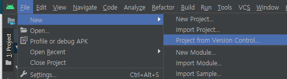 1. 메뉴에서 [New] - [Project from Version Control...] 클릭